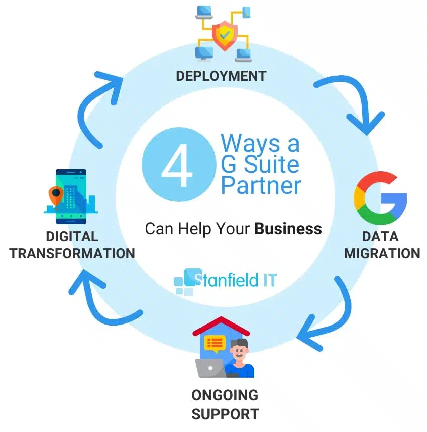 Your G Suite partner may offer you alternative payment solutions that suit you better than a regular credit card payment (for example, electronic transfer or Paypal). Overall, having a G Suite Partner on your team is considerably more beneficial to your business than trying to muddle through things alone. Stanfield IT has a team of certified Google technicians, so we’re able to be your G Suite Partner in whatever capacity you’re looking for.